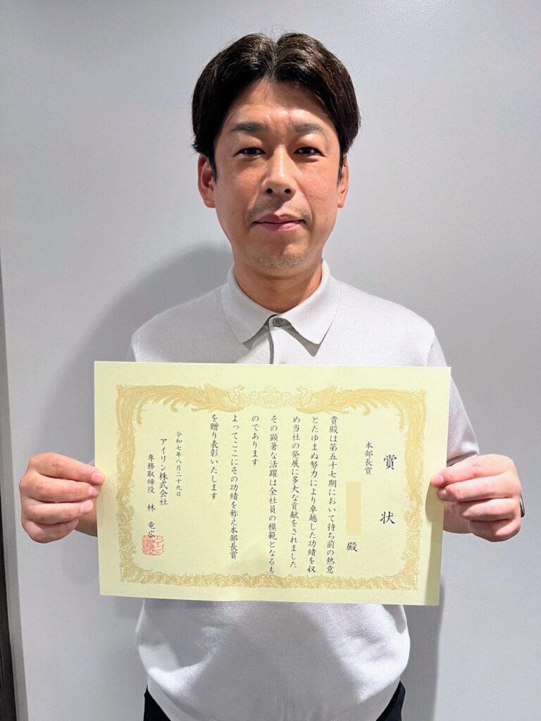 8月29日に実施した、当社の社員総会にて「社員表彰制度」の個人部門の表彰が行われました。